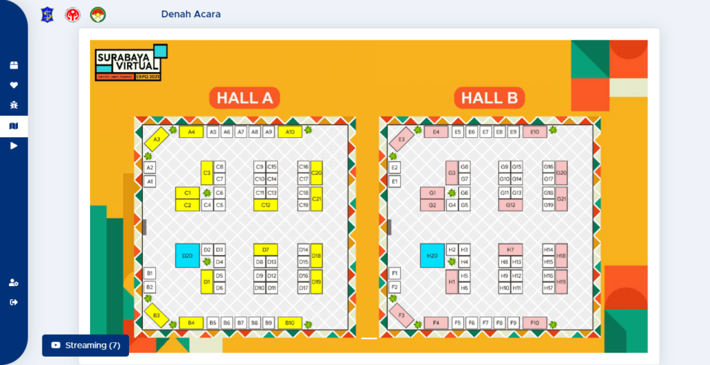 Event organizer (EO) akan mendapatkan akun yang dapat digunakan untuk mengakses melalui EO dashboard. Setelah berhasil mengakses EO dashboard, EO dapat mengakses tombol Hall Editor untuk melakukan tata letak booth maupun elemen lainnya. Elemen selain booth yang dimaksud adalah Non-Player Character (NPC), Walk Point, dan Hall Decoration berupa 2 jenis tanaman hias. Dengan adanya elemen pelengkap tersebut akan membuat hall pameran virtual menjadi lebih menarik. Lalu bagaimana cara melakukan tata letak elemen hall pameran virtual tersebut? Jangan khawatir, event organizer dapat melihat tutorial lengkap untuk Hall Editor.