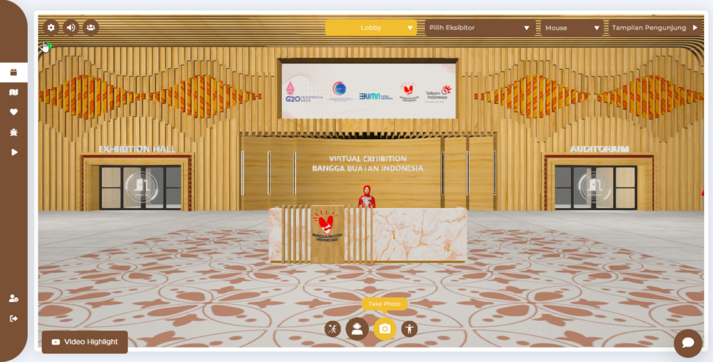 Pertama, pengunjung pameran virtual perlu melakukan login dengan akun yang telah terdaftar di website pameran virtual, Kemudian, pengunjung pameran virtual dapat mengakses lobby pameran virtual. Lalu pengunjung pameran virtual dapat mengakses fitur Information Center On Lobby dengan cara klik tombol information icon yang yang ada pada lobby pameran virtual. Sangat mudah bukan?