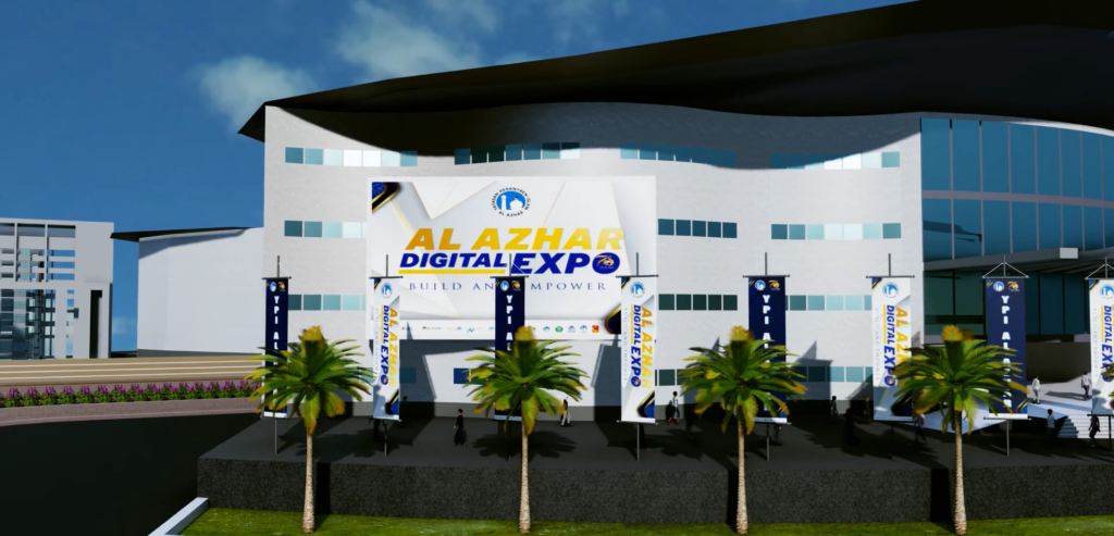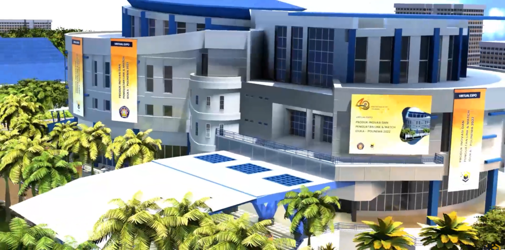 Pada pameran yang diadakan secara offline, biasanya diadakan di sebuah gedung fisik yang lengkap dengan area lobby, hall pameran ataupun auditorium. Sama halnya seperti pameran offline, pameran virtual juga biasanya diadakan di sebuah gedung. Perbedaannya, karena diadakan secara virtual, pameran virtual juga diadakan di gedung virtual. Gedung virtual dapat diartikan sebagai representasi dari gedung fisik pada ruang virtual yang berukuran besar sebagai tempat untuk berkegiatan secara virtual, seperti pameran virtual, webinar, dan sebagainya.