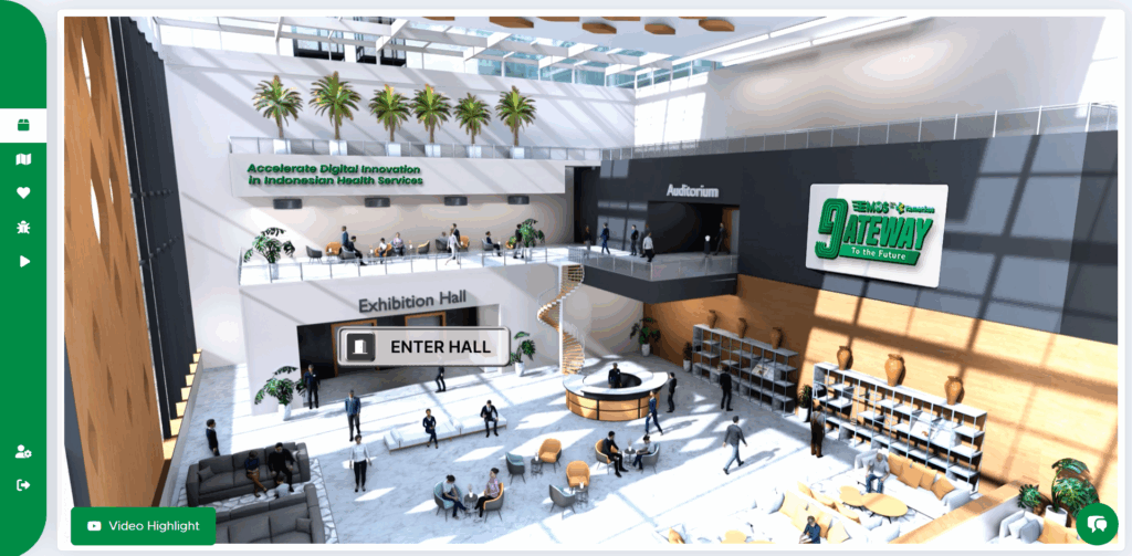 Pengunjung yang mengunjungi hall pameran virtual juga dapat mengkonfigurasi avatar yang digunakan sehingga sesuai apa yang diinginkan. Jika pengunjung kesulitan dalam mencari unit instansi yang diinginkan, pengunjung dapat langsung memilih dari menu “Pilih Exhibitor” pada hall pameran virtual. Selain itu, pengunjung yang hadir juga dapat merasakan pengalaman menjelejahi pameran virtual dan berjalan-jalan di dunia 3D virtual.