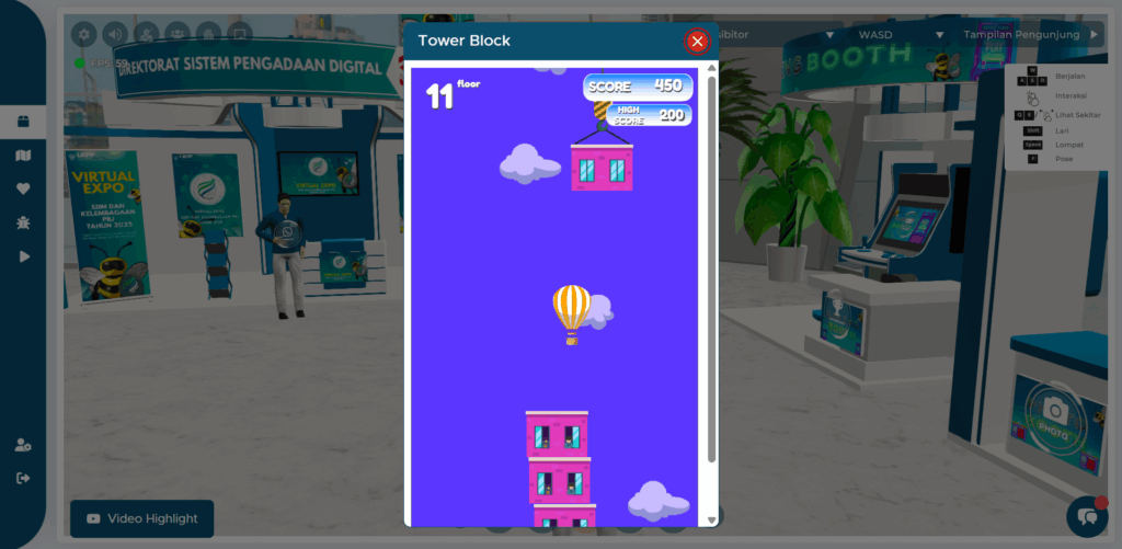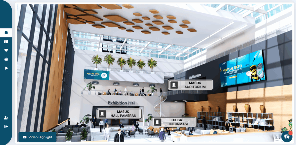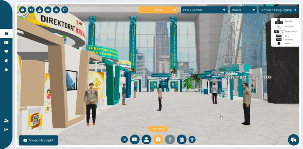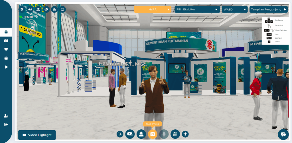 Pengunjung yang mengunjungi hall pameran virtual juga dapat mengkonfigurasi avatar yang digunakan sehingga sesuai apa yang diinginkan. Jika pengunjung kesulitan dalam mencari unit instansi yang diinginkan, pengunjung dapat langsung memilih dari menu “Pilih Exhibitor” pada hall pameran virtual. Selain itu, pengunjung yang hadir juga dapat merasakan pengalaman menjelejahi pameran virtual dan berjalan-jalan di dunia 3D virtual.
