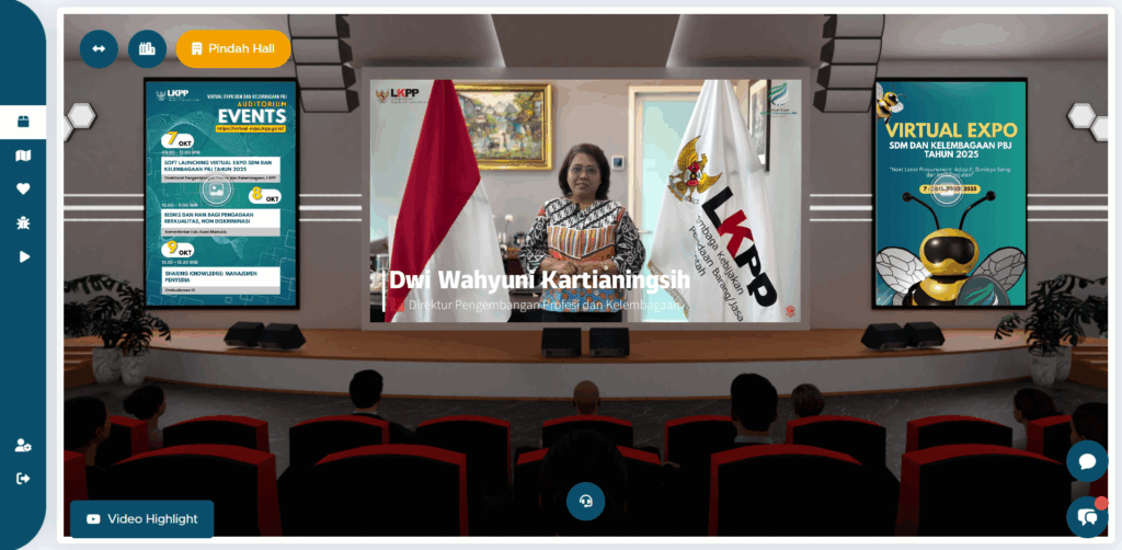 Lembaga Kebijakan Pengadaan Barang/Jasa Pemerintah (LKPP) resmi membuka acara soft opening Virtual Expo SDM dan Kelembagaan PBJ Tahun 2025 pada hari ini, Selasa 7 Oktober 2025. Virtual Expo SDM dan Kelembagaan PBJ Tahun 2025 diadakan dalam rangka menyediakan platform bagi para pemangku kepentingan untuk berinteraksi, berbagi pengetahuan, dan berkolaborasi, mendorong inovasi dan transformasi dalam tata kelola sumber daya manusia (SDM) dan Unit Kerja Pengadaan Barang/Jasa (UKPBJ), memperkenalkan praktik-praktik terbaik dan terobosan baru di bidang pengadaan barang/jasa, serta mengapresiasi dan memberikan penghargaan kepada pihak-pihak yang berkontribusi dalam pengembangan ekosistem pengadaan. Acara Virtual Expo SDM dan Kelembagaan PBJ Tahun 2025 akan berlangsung selama 3 minggu, tepatnya dari tanggal 7 Oktober 2025 hingga 28 Oktober 2025. Pengunjung pameran virtual cukup mengakses laman website https://virtual-expo.lkpp.go.id/ untuk masuk ke pameran virtual. Acara ini didukung dengan teknologi dari platform pameran virtual Simhive.